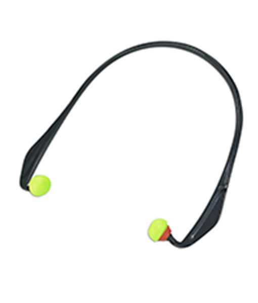 Earband «LITE-BAND» ultraligero (solo 8 g), ovales de forma ovalada hechos de espuma de PU – Color: banda negra y vainas de color verde lima – NRR 20 dB – 1 earband por bolsa, 10 earbands por caja, 10 cajas por caja